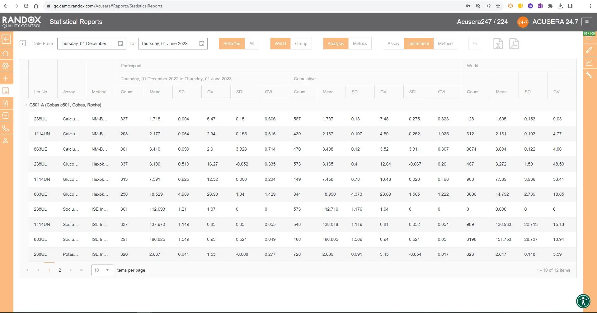 You can select your peer group for an instrument, method and more, providing you with a comprehensive picture of how your laboratory performance compares to your peers using the same lot of control.